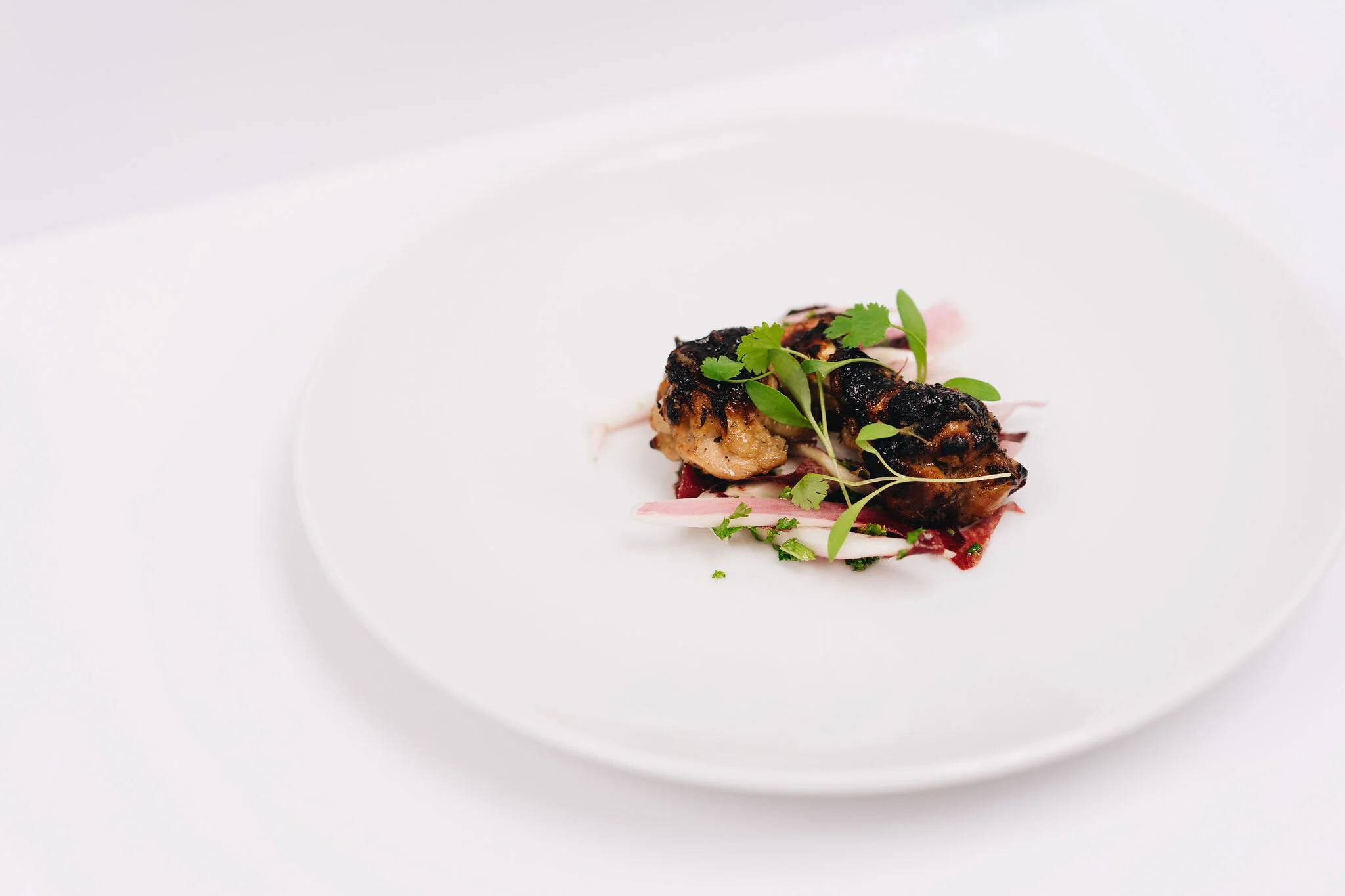 Dress the Salad greens and place on a platter, top with the chicken nibbles